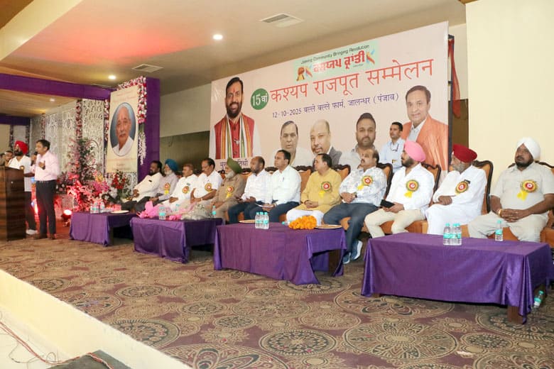 जालन्धर, 12-10-2025 (गुरिन्द्र कश्यप ) – देश-विदेश में रहने वाले कश्यप राजपूत समाज के अच्छे सूझवान, पढ़े-लिखे, अच्छे बिजनस करने वाले, अच्छे अफसरों और समाज के बढिय़ा परिवारों को आपस में मिलाने और जान पहचान करवाने वाला 15वां परिवार सम्मेलन 12 अक्तूबर 2025 को जालन्धर शहर के बल्ले बल्ले फार्म में सफलतापूर्वक आयोजित किया गया। कश्यप क्रांति पत्रिका और कश्यप राजपूत वैबसाइट के मालिक नरेन्द्र कश्यप व मुख्य संपादक शीमती मीनाक्षी कश्यप की अध्यक्षता में आयोजित इस परिवार सम्मेलन में पंजाब, हरियाणा, दिल्ली, जम्मू-कश्मीर, और उत्तर प्रदेश से समाज के बहुत से परिवार शामिल हुए। सम्मेलन के मुख्य मेहमान आल इंडिया कश्यप राजपूत पंजाबी वैल्फेयर सोसायटी के राष्ट्रीय अध्यक्ष करनाल से अनूप भारद्वाज थे जबकि प्रधानगी नांगला हार्डवेयर स्टोर फगवाड़ा के मालिक अमरिन्द्र सिंह नांगला ने की।